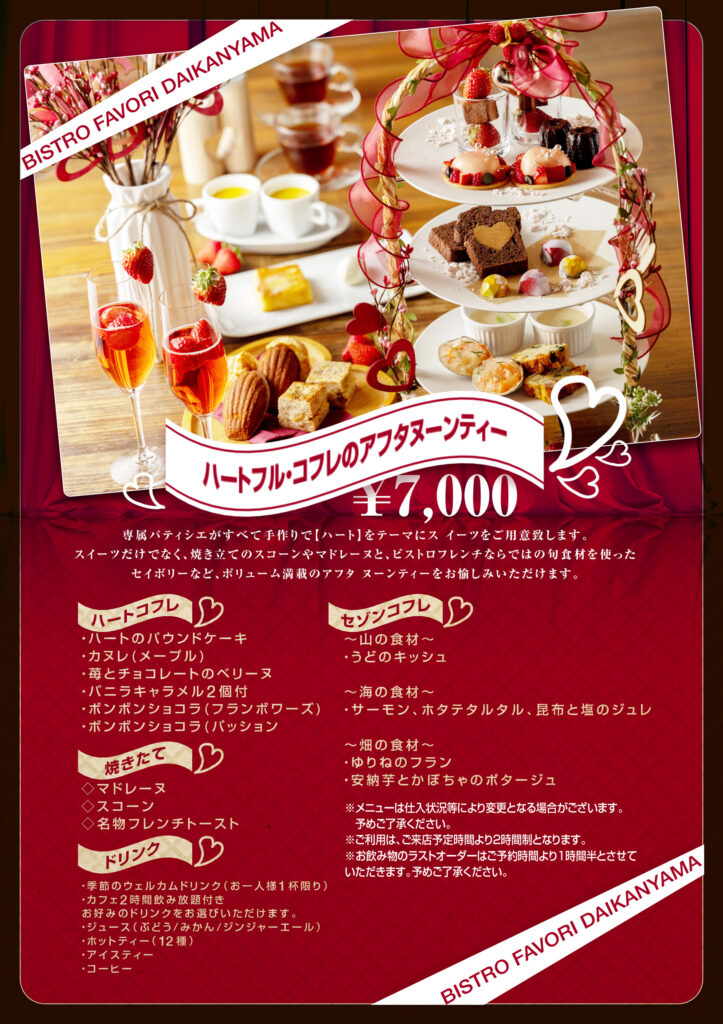 日頃より、「BISTRO FAVORI 代官山」をご利用いただき誠にありがとうございます。2月の営業のご案内です。